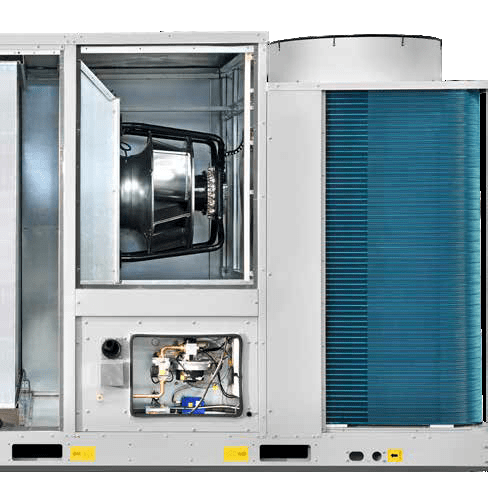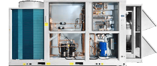 Οι μονάδες στέγης είναι αυτόνομα συστήματα που εγκαθίστανται σε εξωτερικό χώρο και παρέχουν κλιματισμό του αέρα του χώρου μέσω αεραγωγών με δυνατότητα παροχής θέρμανσης, ψύξης και εξαερισμού σε μία συνεκτική μονάδα. Με 4 συμπιεστές σταθερής ταχύτητας συνολικά σε 2 ανεξάρτητα κυκλώματα ψυκτικού ή προαιρετικό συμπιεστή με αναστροφέα, επιτρέπεται εξοικονόμηση ενέργειας με τη μείωση της ισχύος που καταναλώνεται στις μονάδες υπό συνθήκες μερικού φορτίου. Επιπλέον, εξωτερικοί ανεμιστήρες EC που χρησιμοποιούνται στον βασικό εξοπλισμό στην πλευρά αέρα παροχής και στην πλευρά αέρα επιστροφής παρέχουν αποδοτικότητα και ευκολία κατά τη συντήρηση. Χάρη στους εξωτερικούς ανεμιστήρες EC, το σύστημα ελέγχου συμπίεσης της εσωτερικής μονάδας επιτρέπεται με επιλογή ελέγχου πίεσης. Οι μονάδες νέας γενιάς μπορούν να ανταποκρίνονται σε κάθε είδος απαίτησης κατεύθυνσης σύνδεσης αεραγωγού. Ακόμα και αν οριστούν όλες οι επιλογές στην πλευρά αέρα παροχής και επιστροφής, παρέχεται η δυνατότητα σύνδεσης αεραγωγού κάτω, πάνω ή πλευρικά.